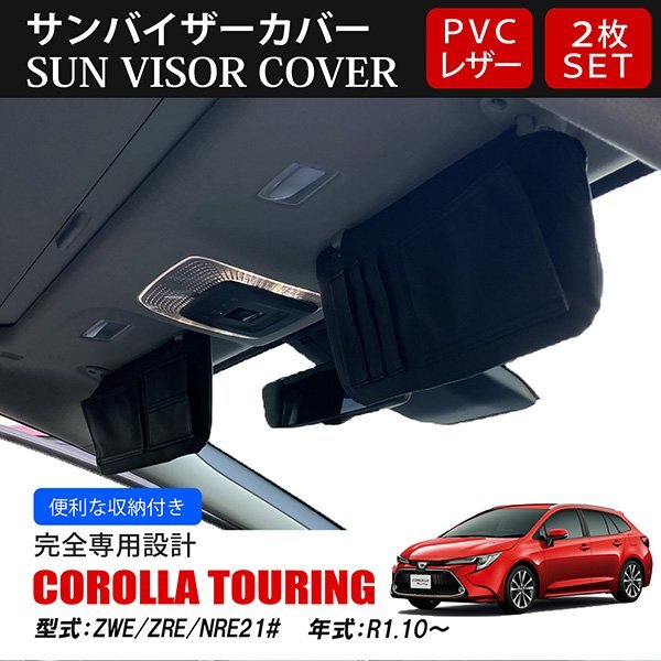 > カローラ ツーリング 210系 サンバイザーカバー 収納ポケット付き 日よけ 紫外線防止 PVCレザー ブラック 左右セット
