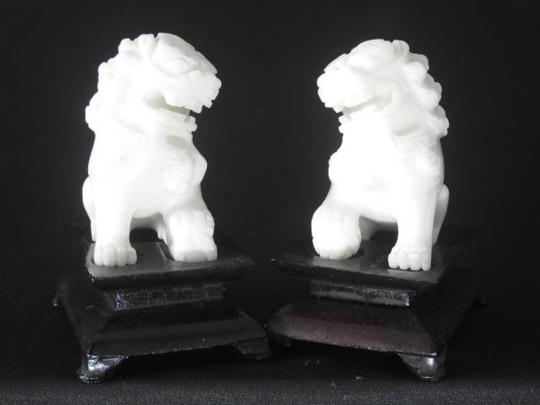 - 獅子 一対 石彫刻 置物 【送料無料】