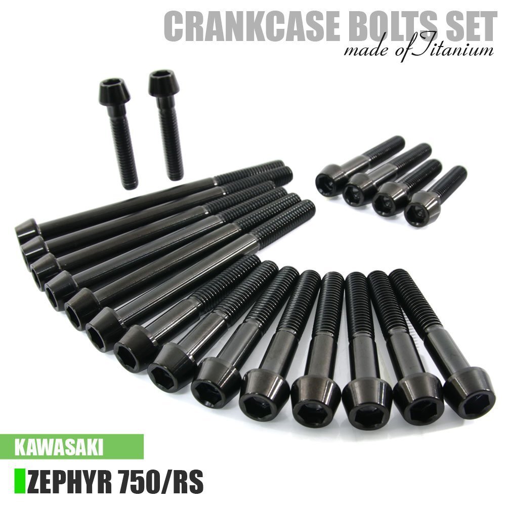 > チタンボルト カワサキ ゼファー750/RS専用 ZR750 クランクケース エンジンカバー ボルト セット 20本 ブラック 軽量化 カスタム