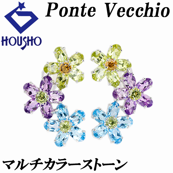 > ポンテヴェキオ ペリドット ピアス アメジスト トパーズ K18WG Ponte Vecchio 花 フラワー 植物 ボタニカル 送料無料 中古 宝正 902973