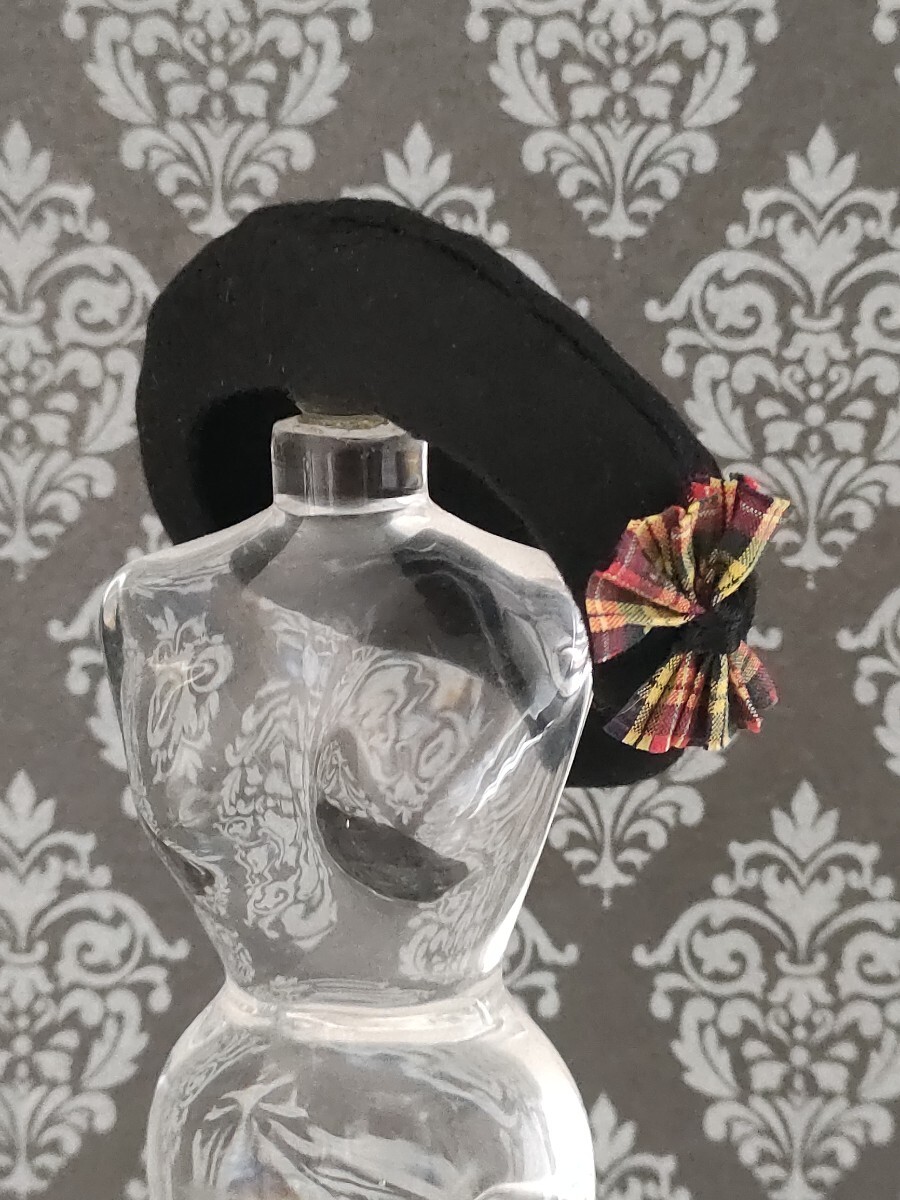 > tia ドール用 黒 ブラック ベレー帽 チェック リボン 帽子 ぼうし タミーちゃん ヘッド サイズ 1/6ドール
