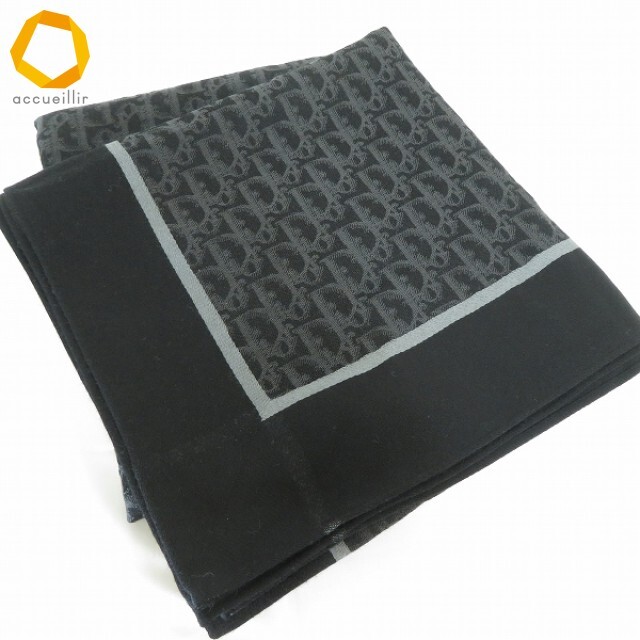 - #wxe クリスチャンディオール ChristianDior ストール ショール 大判 黒 グレー 総柄 トロッター ヴィンテージ レディース [957307] k01