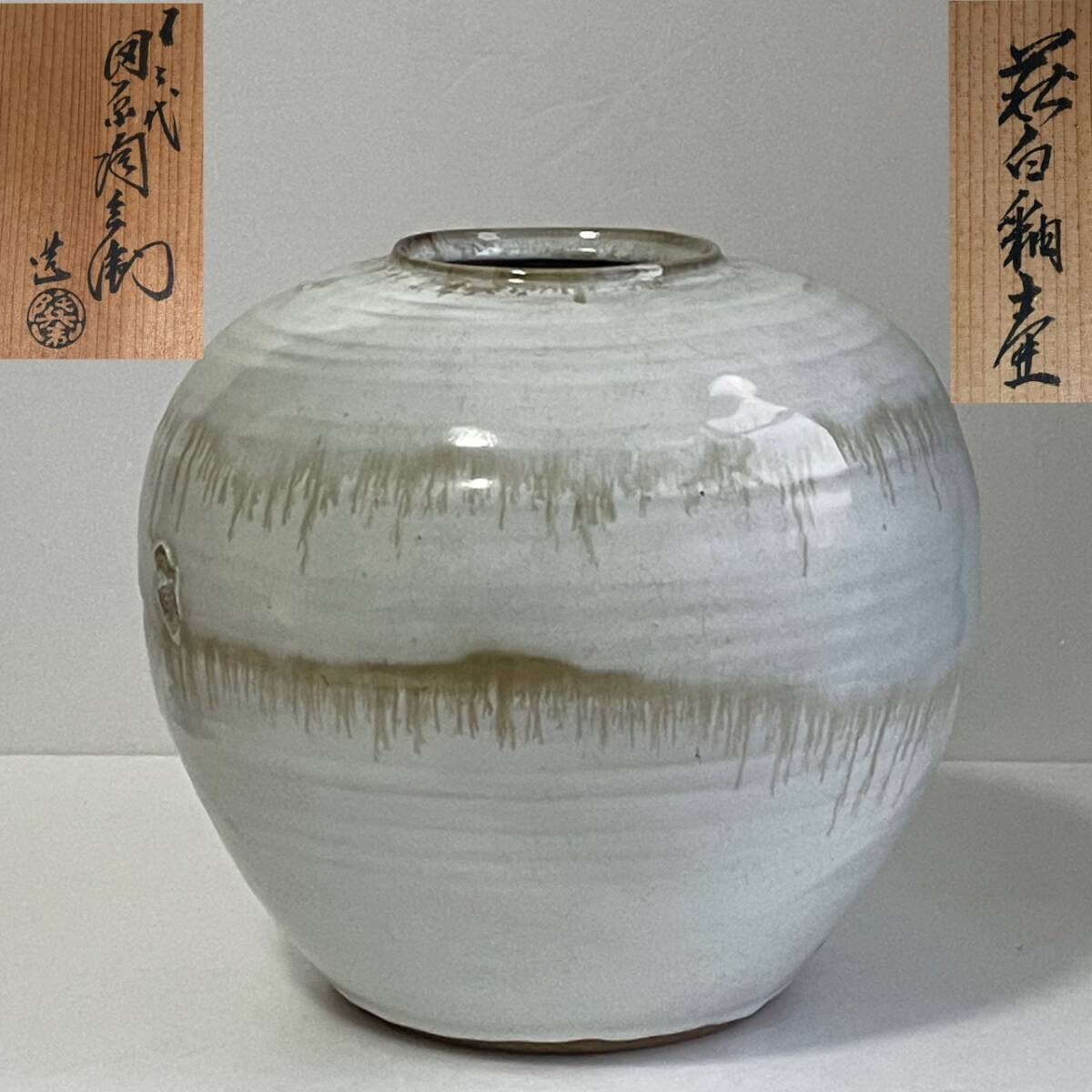 - 【和美】十二代 田原陶兵衛 大壺(幅29㎝) 萩白釉壺 共箱 本物保証 花器 萩焼 021