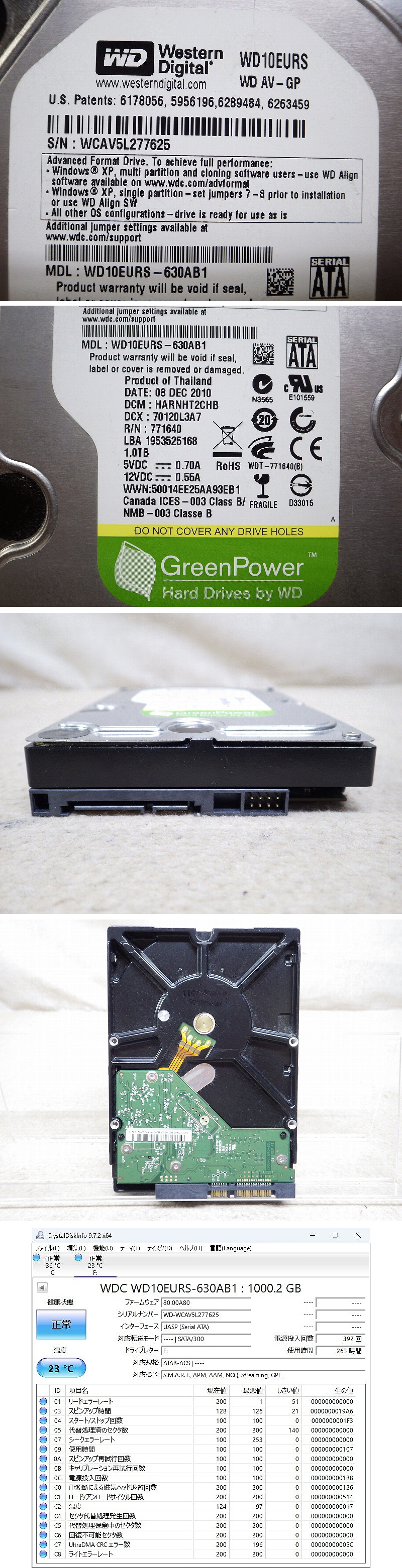- Kネま2080 WD SATA 3.5インチ 内蔵HDD 1TB WD10EURS-630AB1 パソコン周辺機器 PCパーツ ハードディスク