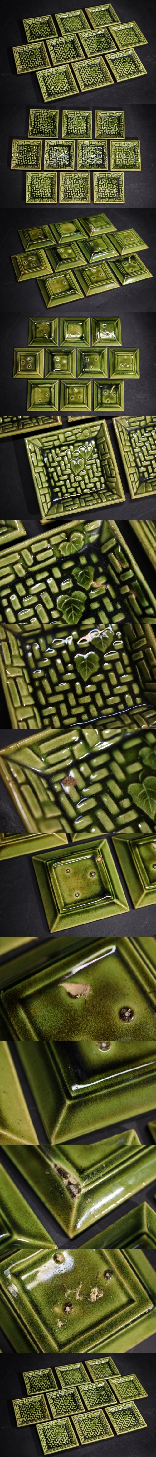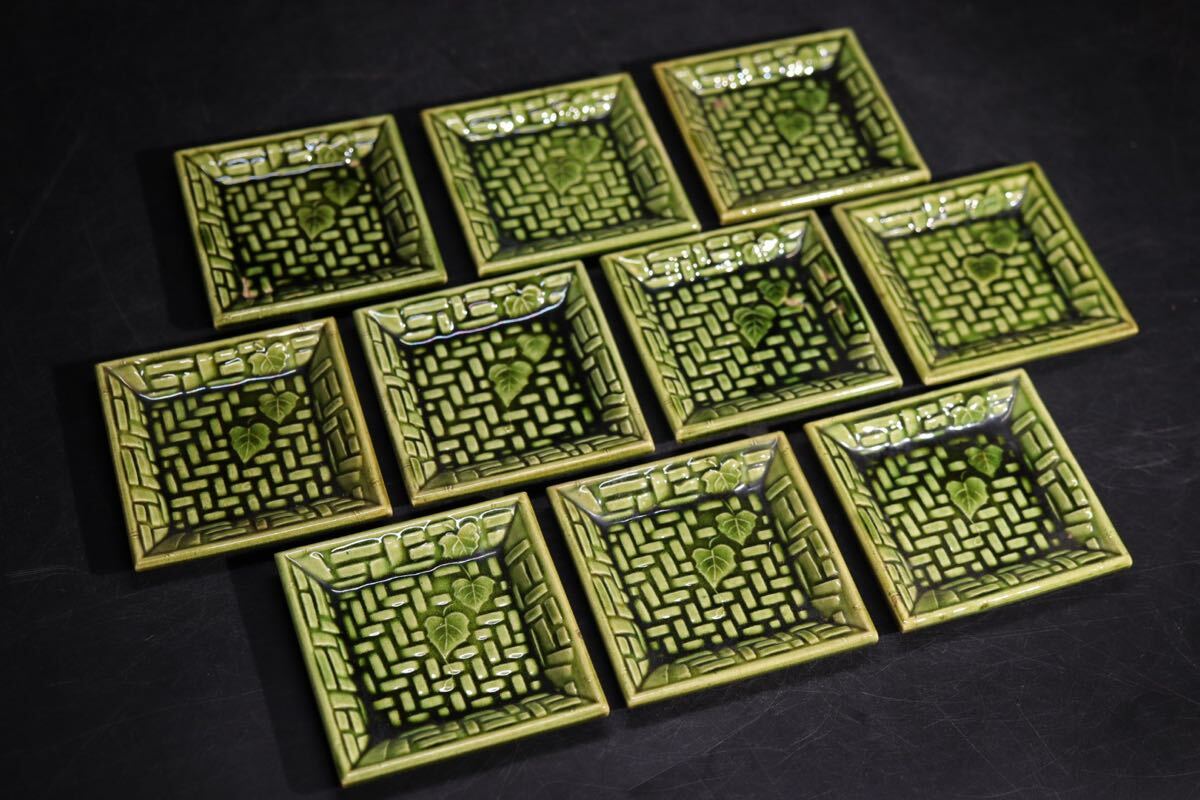 - 時代 珉平焼 緑釉 豆皿 十客 / 小皿 銘々皿 茶器 煎茶道具 煎茶飾 .G2986