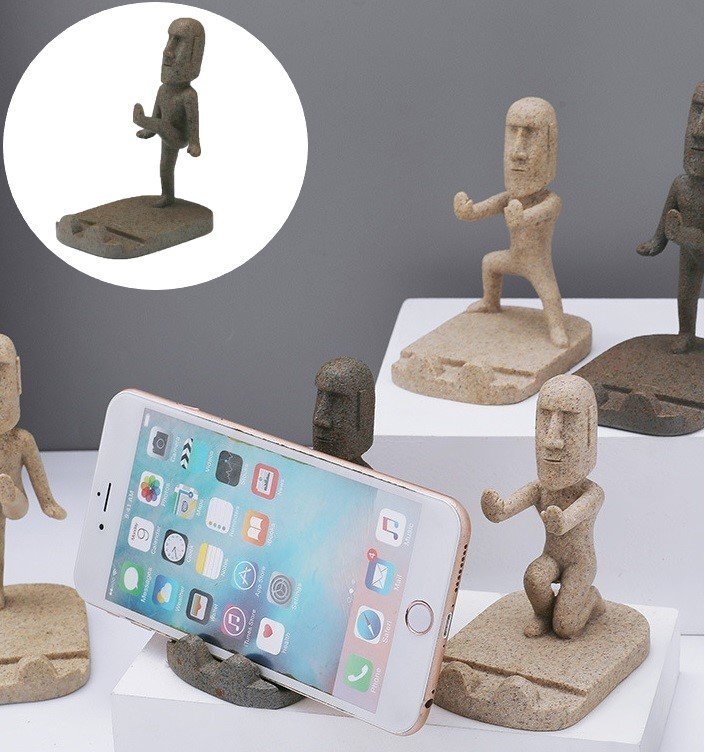 - キュートな モアイ像 ブラウン タイプA キックで支える モアイ スマホスタンド オブジェ インテリア n929