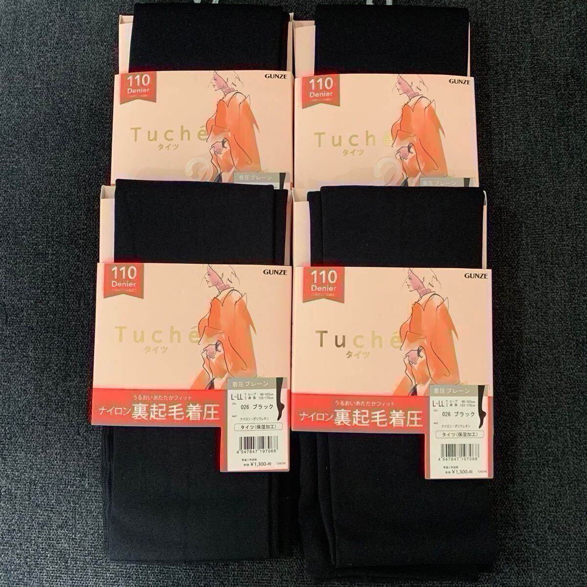 - 新品 4足セット 定価5,720円 グンゼ Tuche 110デニール 裏起毛 着圧タイツ L-LLブラック