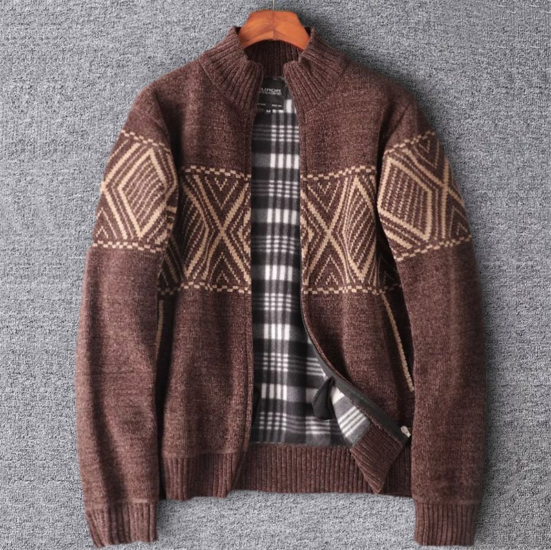 - 新品 国内未販売 ジャケットカーディガン 暖かさ 裏ボア メンズ シェニール フリース アウター ジップアップ ニットセーター 茶 T7108-2XL