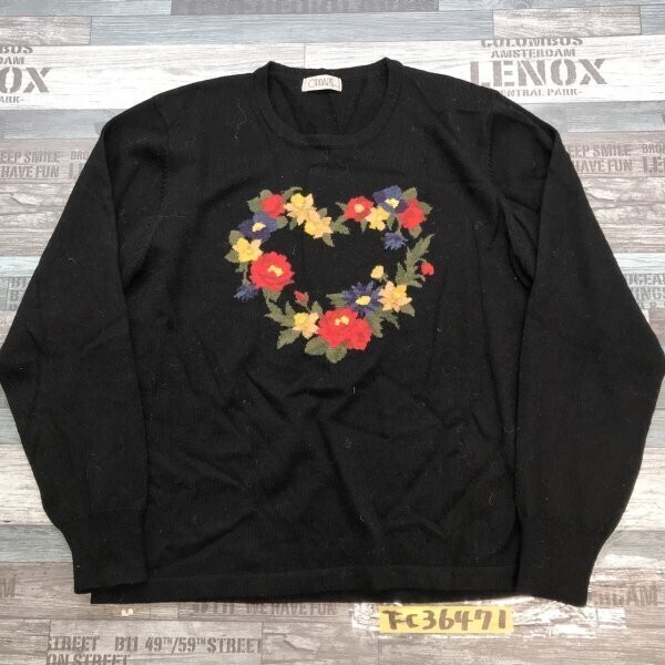 - OPPART レディース ウール100% 花柄 薄手 ニットソー 黒