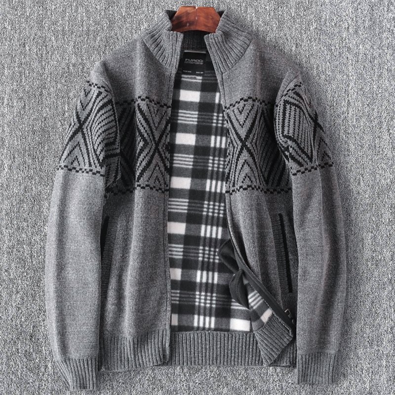 - 新品 国内未販売 ジャケットカーディガン 暖かさ 裏ボア メンズ シェニール フリース アウター ジップアップ ニットセーター 灰 T7107-XL