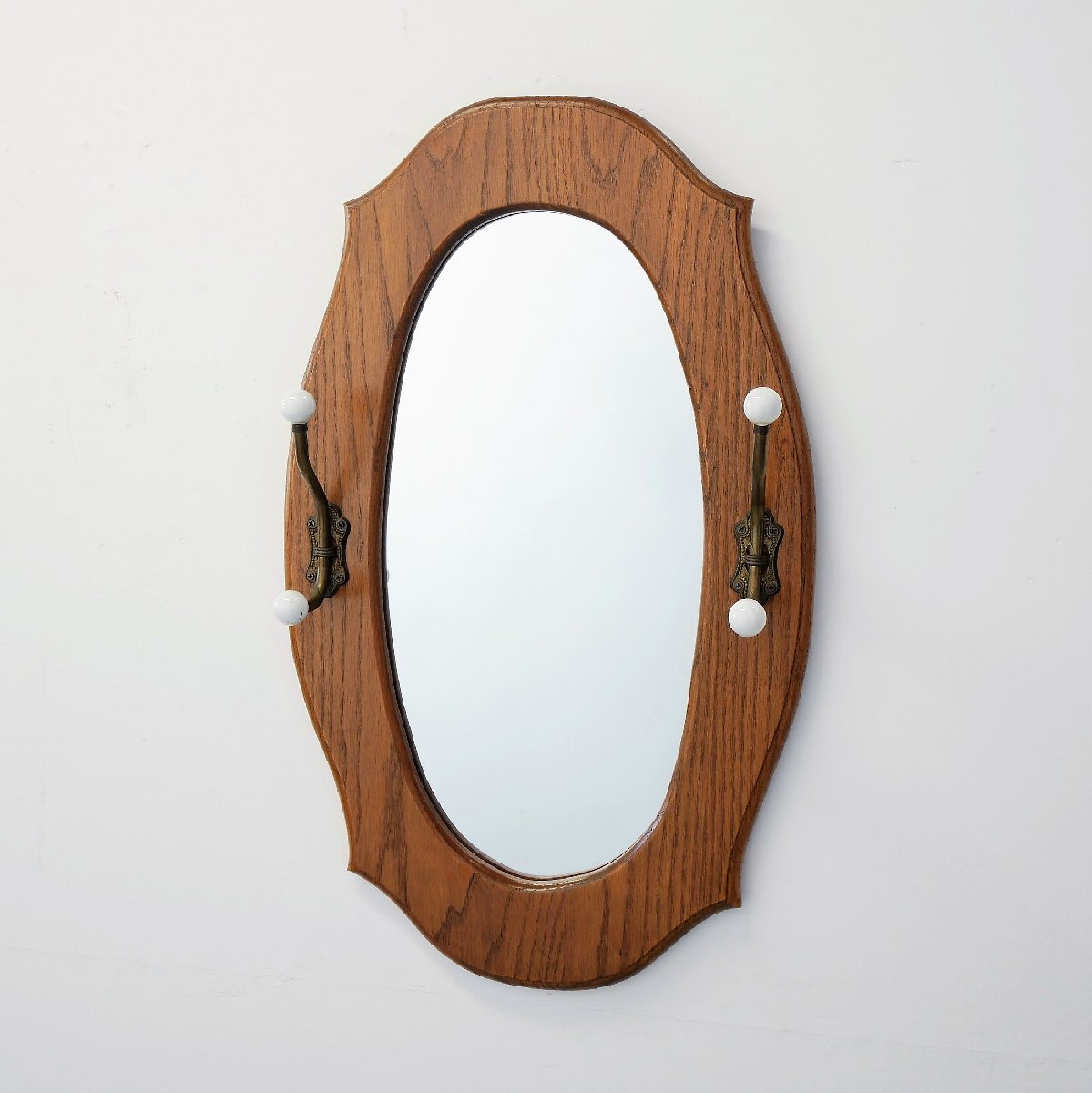 - アメリカ ヴィンテージ フック付き壁掛け鏡【#5273】オーク材 ミラー ウォールラック ショップディスプレイ カリフォルニア LA