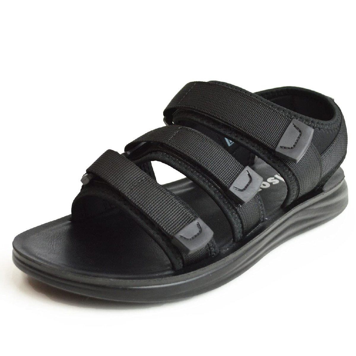 - 新品■24.5~25cm メンズ アウトドア サンダル 軽量 ベルクロ マジックテープ ベルト 黒 シンプル スポサン ビーチ 海 川【エコ配送】