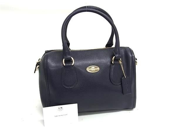 - 1円 ■美品■ COACH コーチ F33329 レザー ハンドバッグ トートバッグ レディース ネイビー系 BQ1834