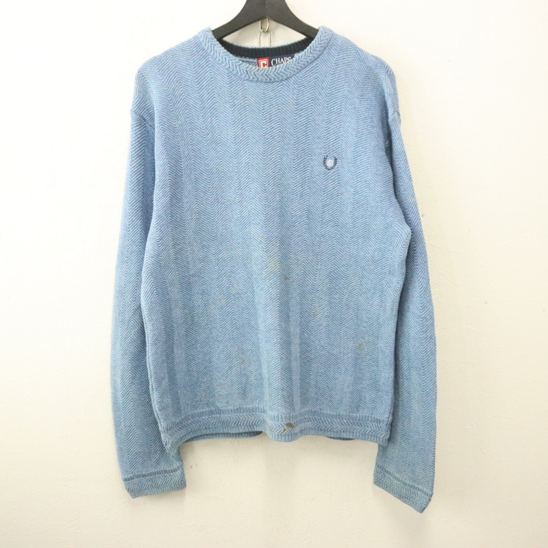 > y525 2000年代製 CHAPS チャップス コットンニットセーター■00s 表記Sサイズ ブルー 青 刺繍 ワンポイントロゴ アメカジ 古着 激安 希少