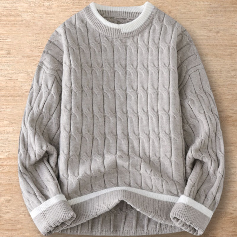 - Y091-L カーキ 新品DCKMANY ウール混 ケーブル編み ニットセーター 配色 トップス 厚手 暖かい メンズ プルオーバー ラウンドネック