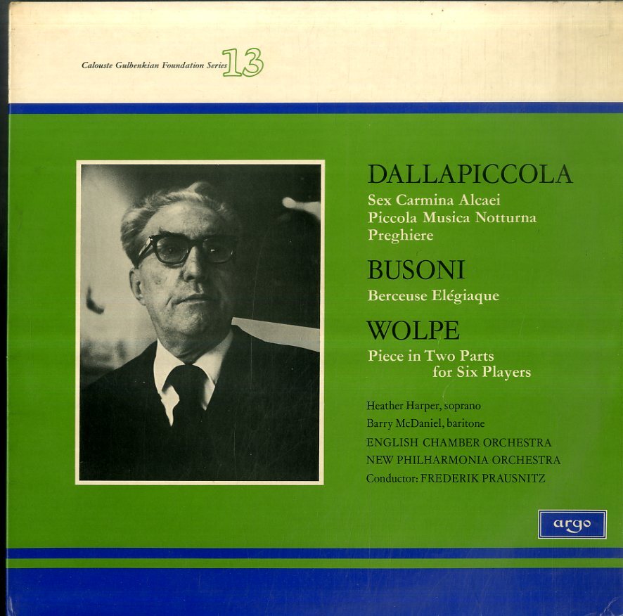 A00443684/LP/ヘザー・ハーパー(S)/フレデリク・プラウスニッツ(指揮)「Dallapiccola / Sex Carmina Alcaei (1975年・ZRG-757)」