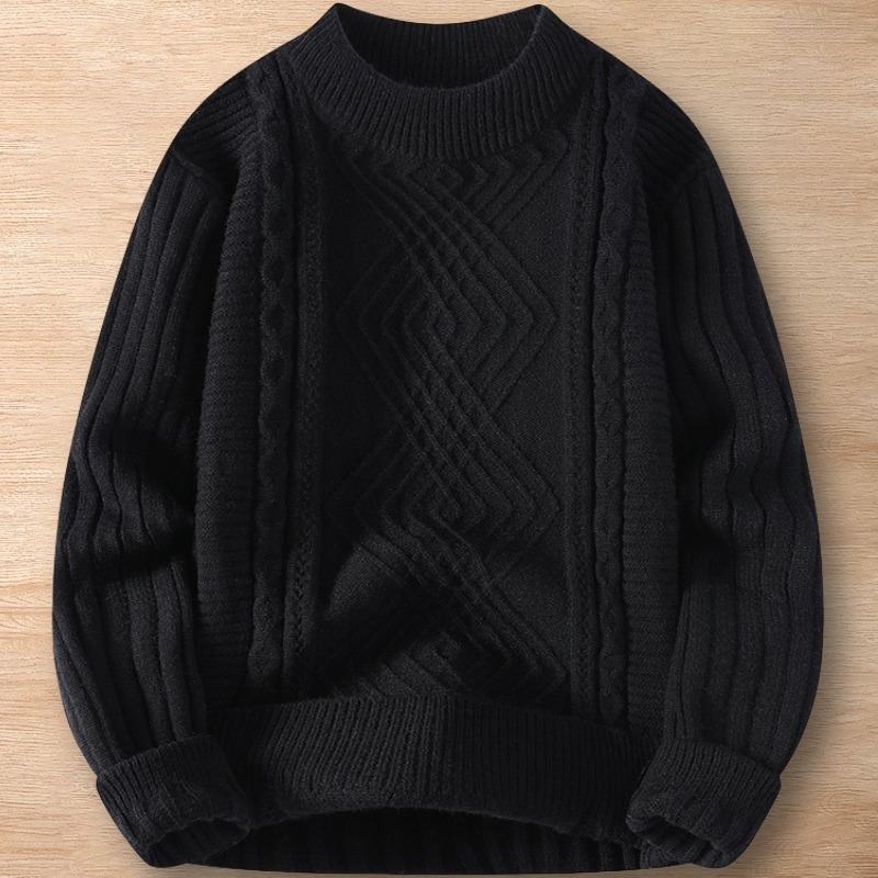 - Y104-XL 黒 新品DCKMANY ウール混 ニットセーター 厚手 暖かい 秋冬 プルオーバー ラウンドネック メンズ ケーブル編み 無地 トップス