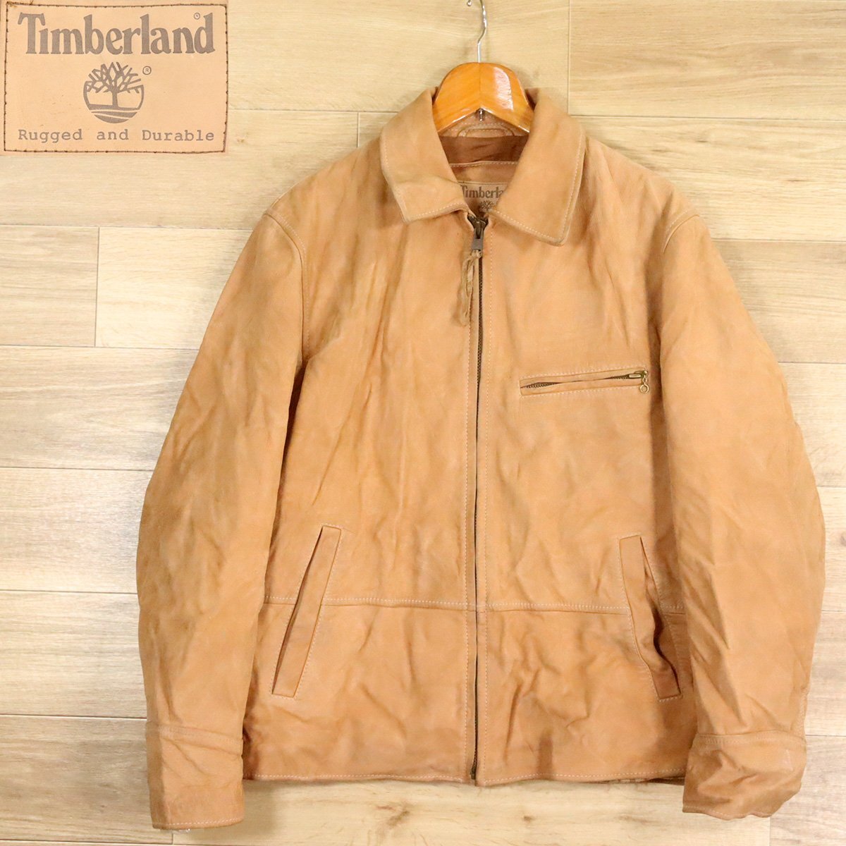 > !2T/O10.9-1 アメリカ古着 Timberland ティンバーランド レザージャケット M メンズ 本革 ライダース 革ジャン 皮ジャン