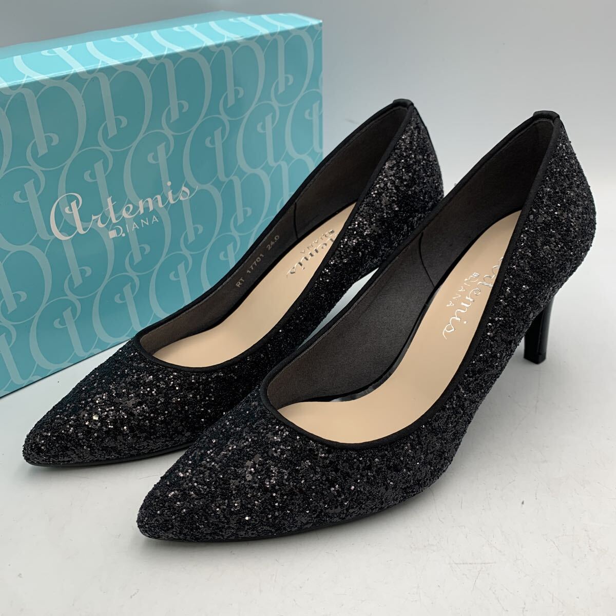 - W386B 美品 DIANA ダイアナ レディース パンプス ハイヒール 24cm ブラック ラメ 日本製 箱付き