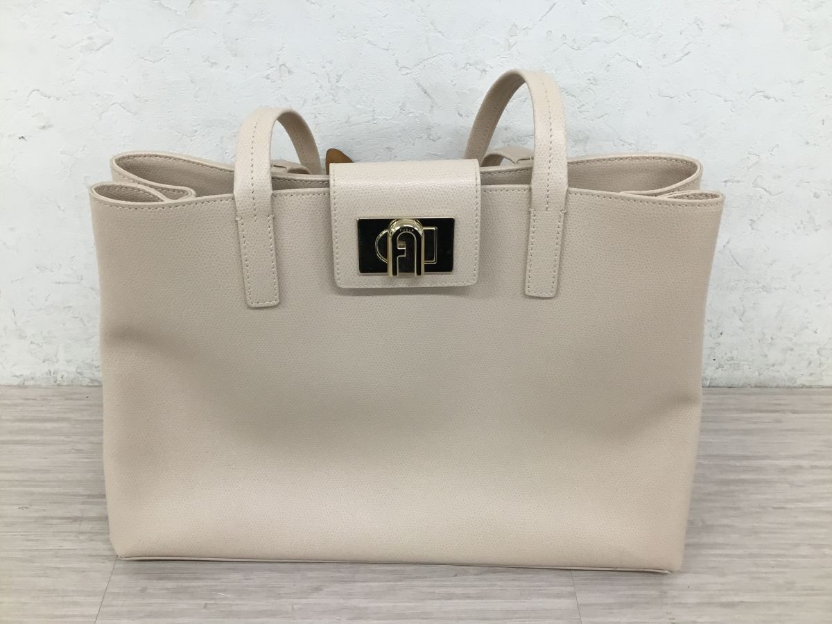 > ●営FU175-100 FURLA フルラ トートバッグ ベージュ系 レザー ゴールド金具 スカーフ付き レディース