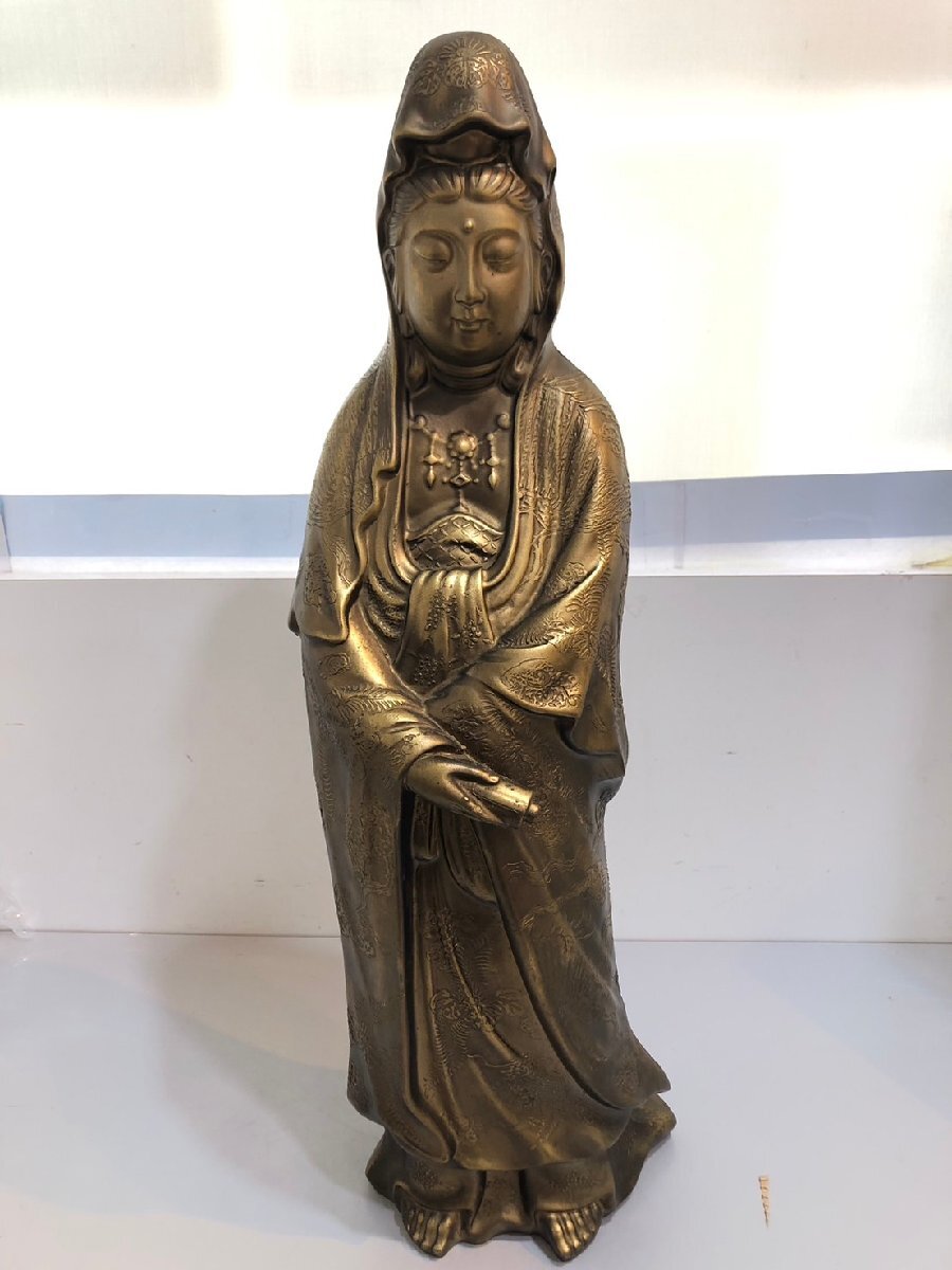 - ◆観音菩薩像 篤玉作 高さ約61cm 重さ約11.1kg 材質不明 観音様 仏像 置物 インテリア 中古◆18289★