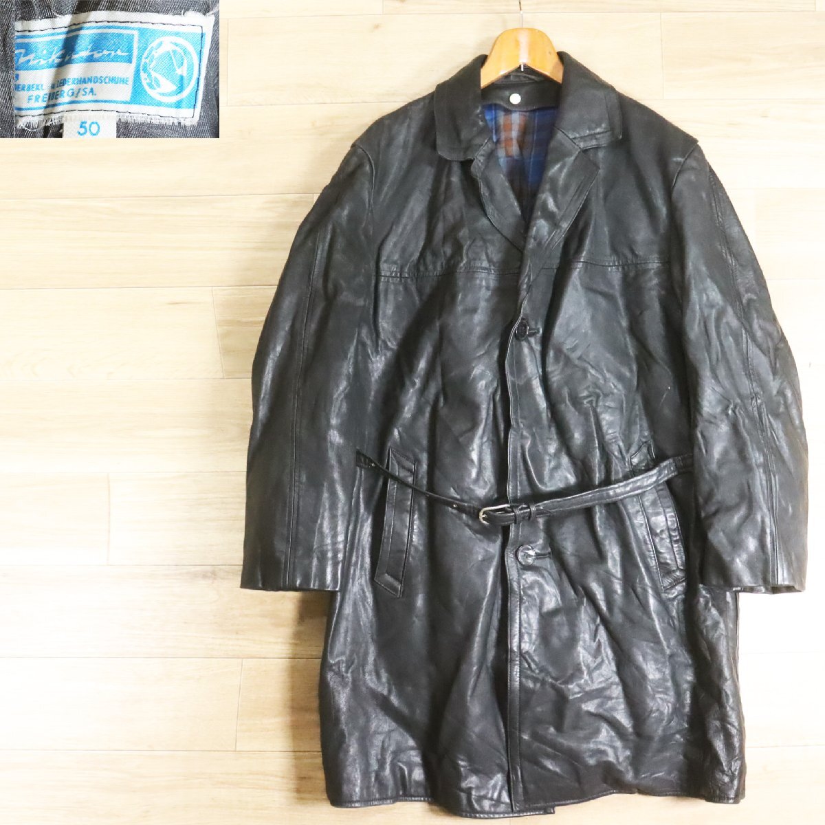 - *10K/Y6.2-12 ユーロ古着 ドイツ Nikator レザーモーターサイクルコート 本革 レザーコート レザーカーコート レザージャケット