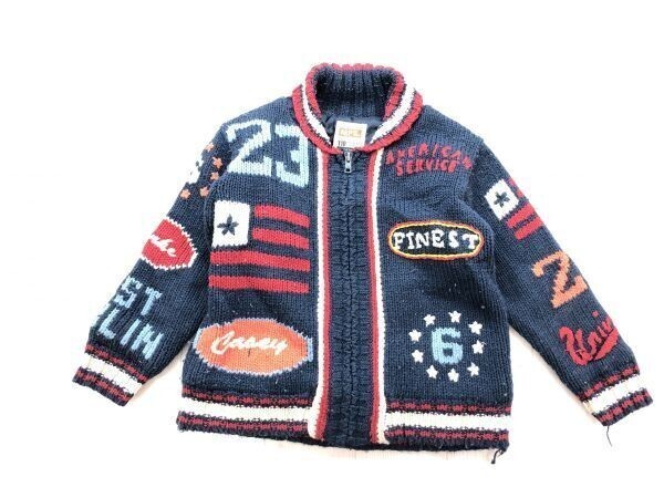> MPS エムピーエス ジップアップ 総柄 ジャガード ローゲージ ニット カウチン ジャケット キッズ 子供服 アクリル100% 裏地付き 110 紺系