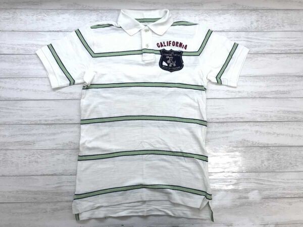 > オールド ユニクロ OLD UNIQLO American shop SIGNS 00s アメカジ カルフォルニア ワッペン ボーダー 鹿の子 半袖ポロシャツ メンズ L 白