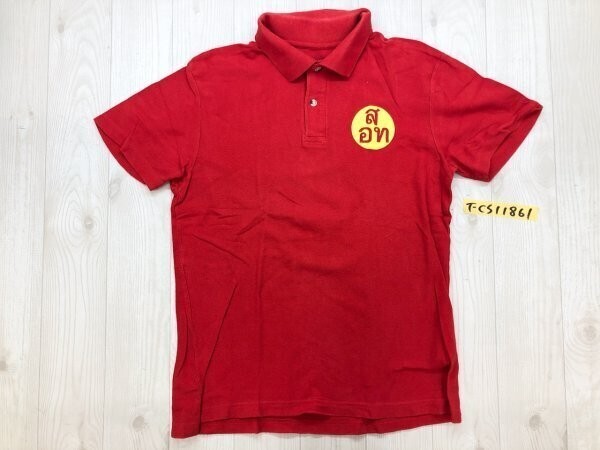 - Hanes ヘインズ メンズ タイ語プリント 半袖ポロシャツ S 赤
