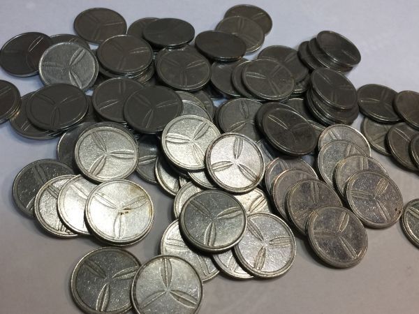 - スロット メダル 100枚 中古 直径2.5㎝ 同一デザイン 清掃済 ② 1-8