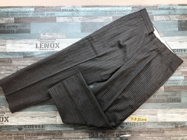 - メンズ ウール 日本製 タック入り ストライプ スラックスパンツ 91 黒グレー