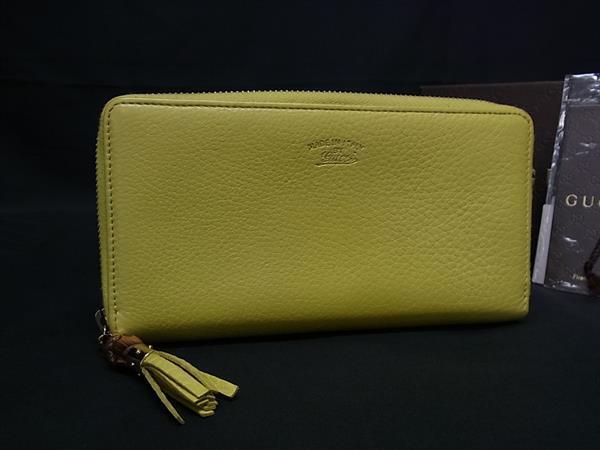 > 1円 ■美品■ GUCCI グッチ 307984 バンブー レザー ラウンドファスナー 長財布 ウォレット 小銭入れ レディース イエロー系 FR6580