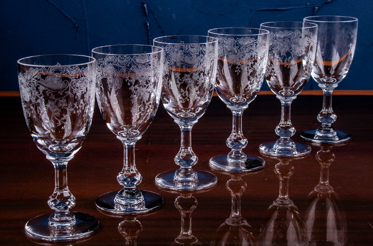 > 【うつわ】 サンルイ Saint-Louis クレオ ワイングラス 6客 F074 古美術 骨董 古玩 茶道具 日本料理 料亭 懐石