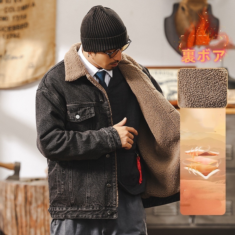 - 裏フリース ニムジャケット ブルゾン アウター ショートコート ジージャン 裏ボア裏シェルパ メンズ・新品【1320】黒色 L