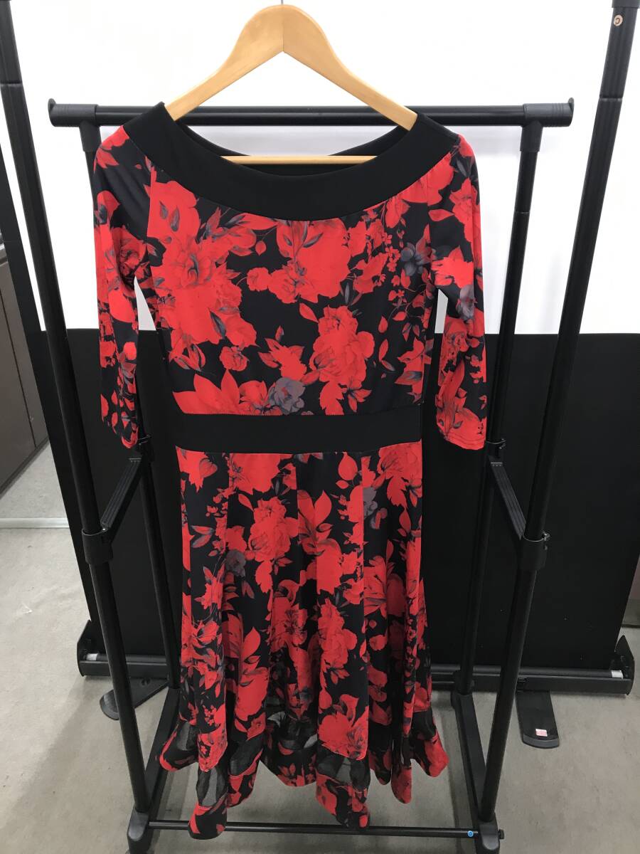 - 社交ダンス ダンス衣装 レッド ブラック 花柄 現状品 中古品