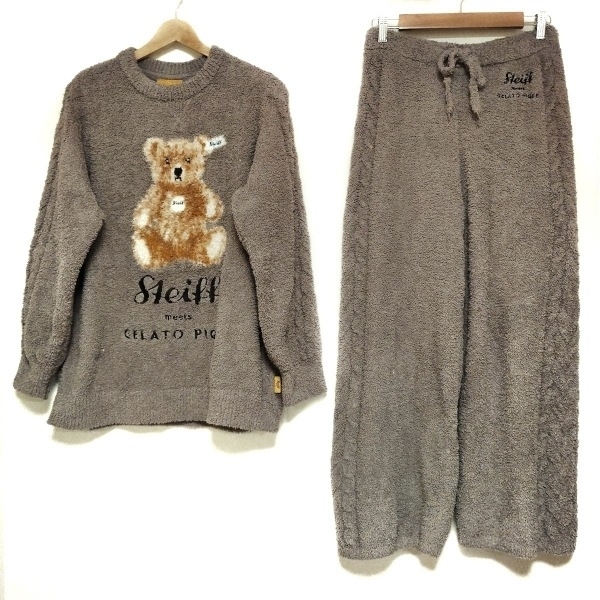 - ジェラートピケ gelato pique レディースパンツセットアップ - ブラウン×マルチ レディース Steiffコラボ/クマ レディーススーツ