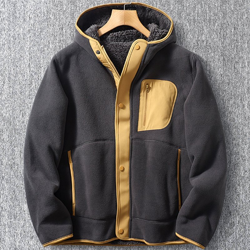 > 新品 フェイクボア ジャケット スタンドカラー 配色 バイカラー 秋冬 防寒 厚手 メンズ 保温 ボアフリースジャケット 灰 T8165-L