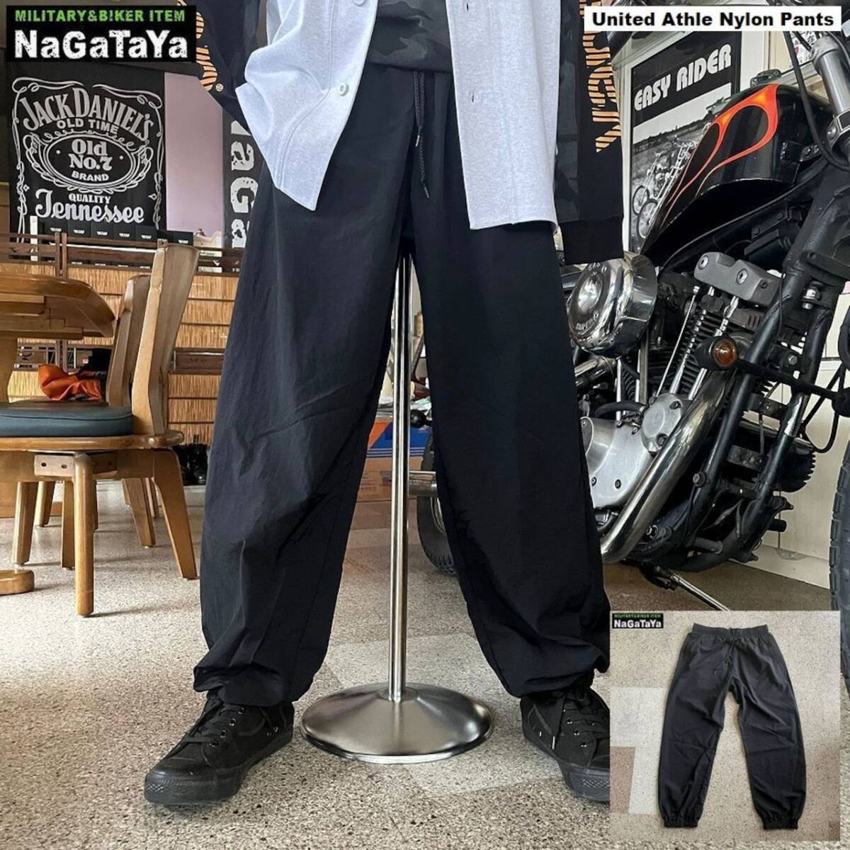 - United Athle ユナイテッドアスレ コットンライク ナイロン トレーニングパンツ ブラック 黒 XLサイズ 一重 タスランしわ加工生地