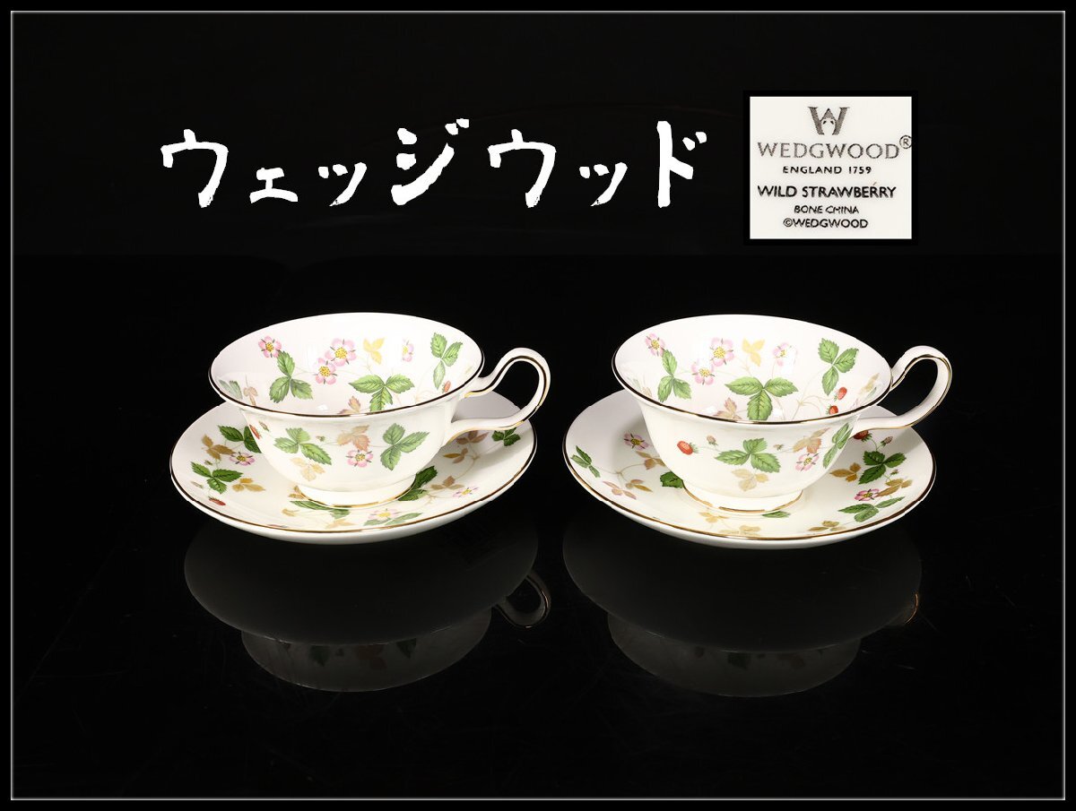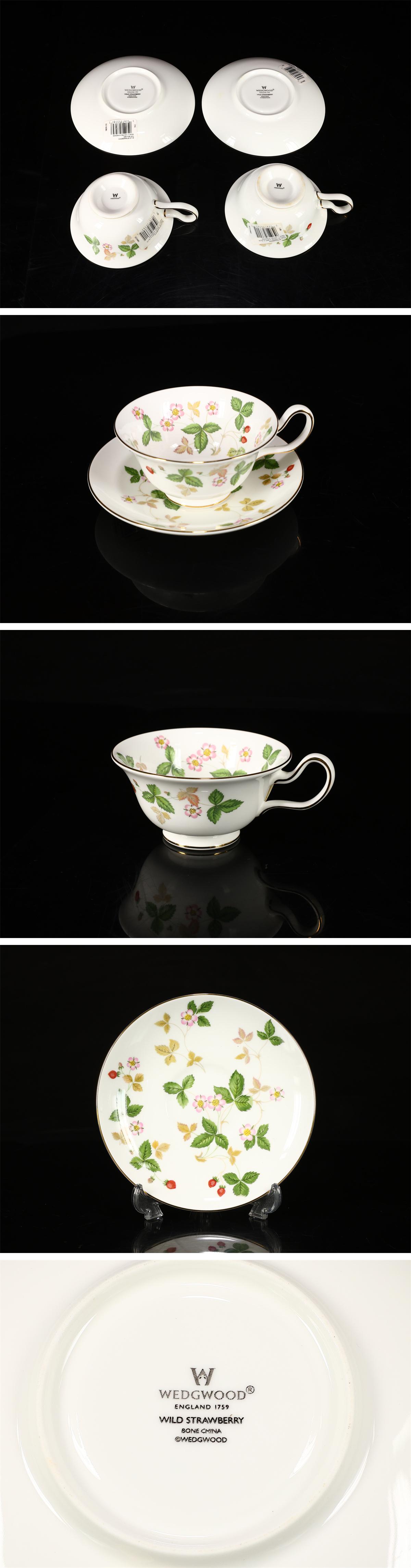 > 【吉】CN738 WEDGWOOD 【ウェッジウッド】 WILD STRAWBERRY ワイルドストロベリー カップ&ソーサー 2組 4点セット/箱付 未使用品!