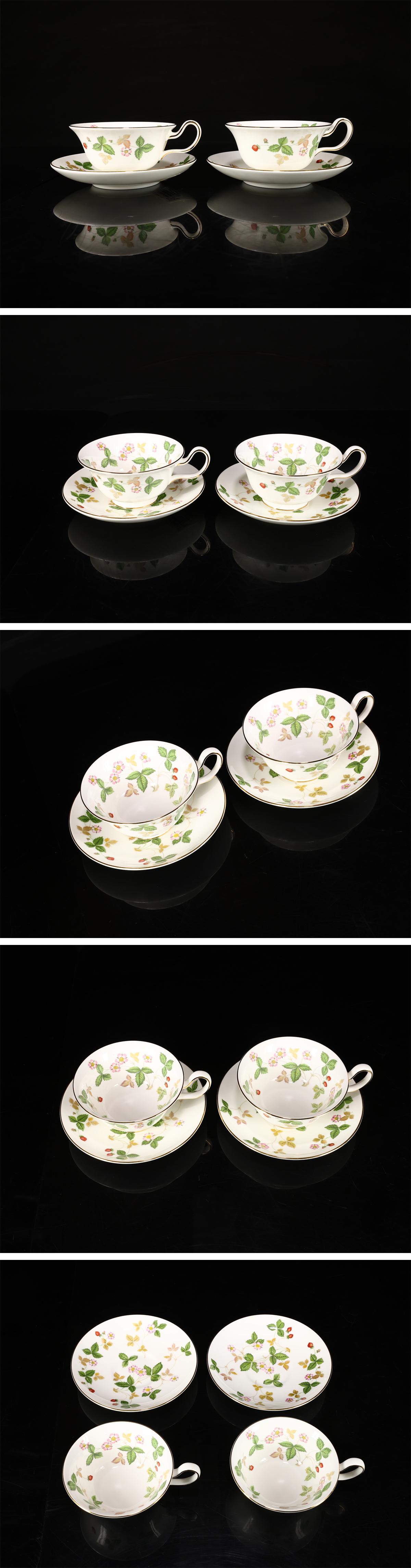 - 【吉】CN738 WEDGWOOD 【ウェッジウッド】 WILD STRAWBERRY ワイルドストロベリー カップ&ソーサー 2組 4点セット/箱付 未使用品!