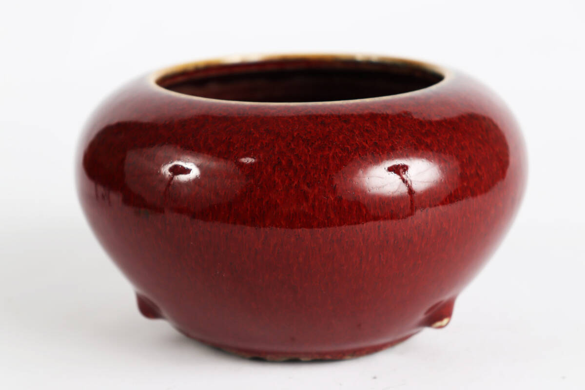 - 中国古玩 唐物 清朝期 辰砂釉 三足香炉 古美術品E976