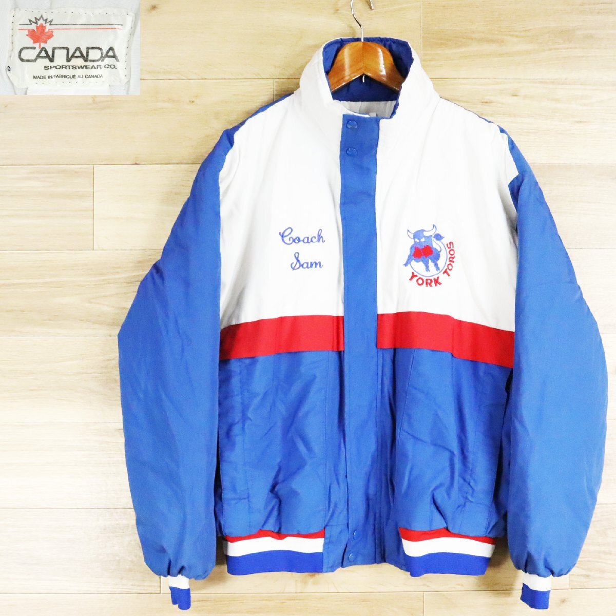- J12O/O4.9-7 カナダ製 CANADA SPORTS WEAR 中綿ジャケット 刺繍 ジップアップ ジャンパー ブルゾン メンズ XL トリコロール