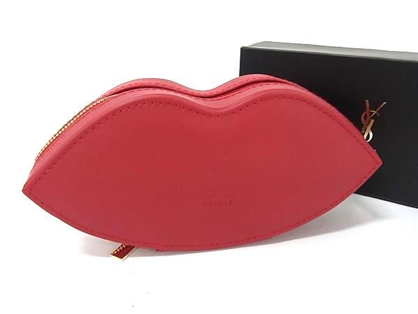 > ■極美品■ YVESSAINTLAURENT イヴサンローラン レザー リップ 唇モチーフ マルチポーチ マルチケース 小物入れ レッド系 DK6388