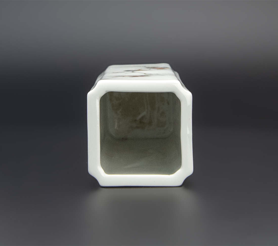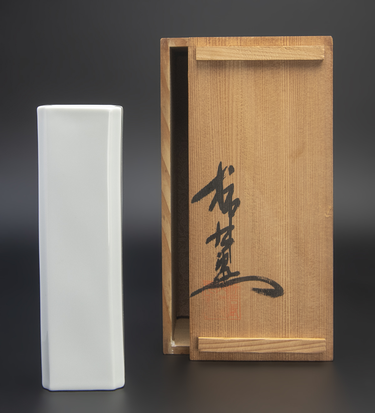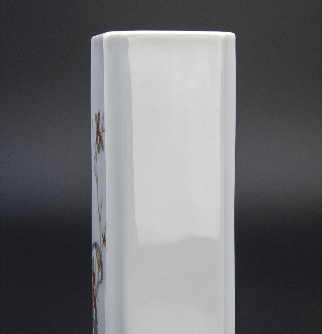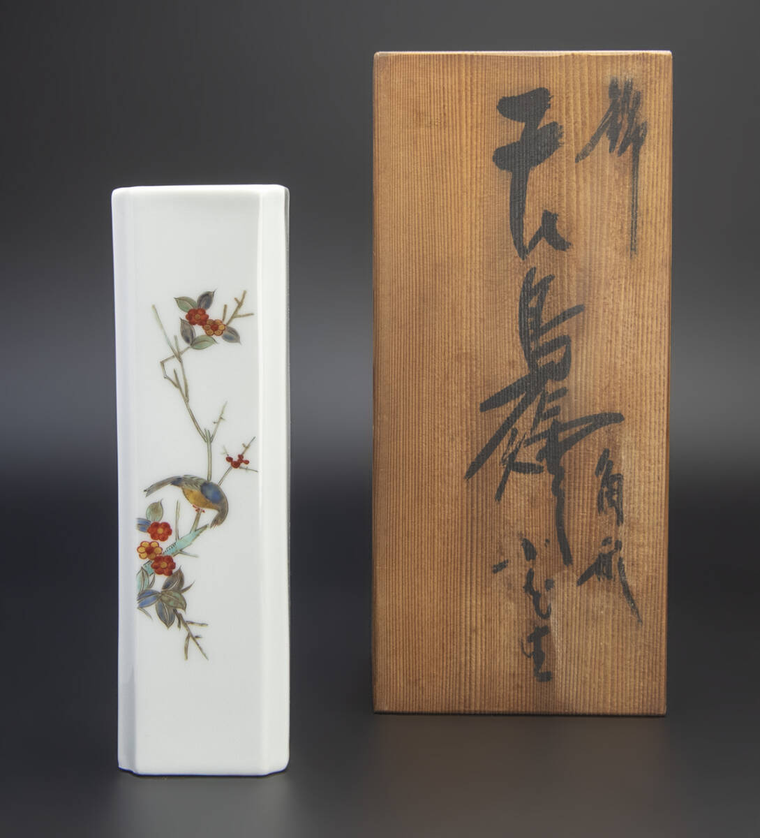 - 十二代 柿右衛門 渦福銘 錦 角形花鳥文花生 共箱 古美術