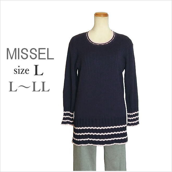 - 〔MISSEL〕紺ピンク配色ニット 透かし模様 セーター トップス 長袖 ミゼール 株式会社ジュニアー レディース L~LL位 ☆送料込み