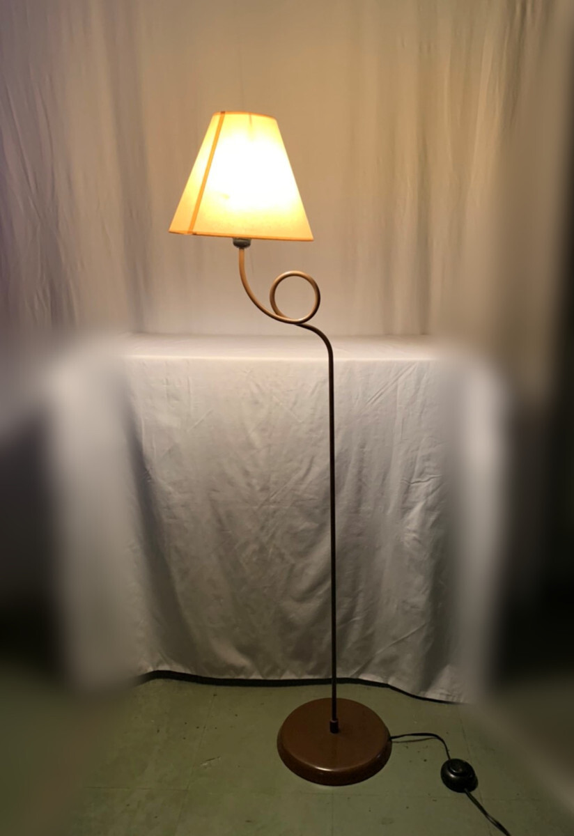 ▽le Dauphin ル・ドファン フロアランプ 高さ:約132cm シェード:ベージュ系 アーム:茶 中古▽K004565拍卖