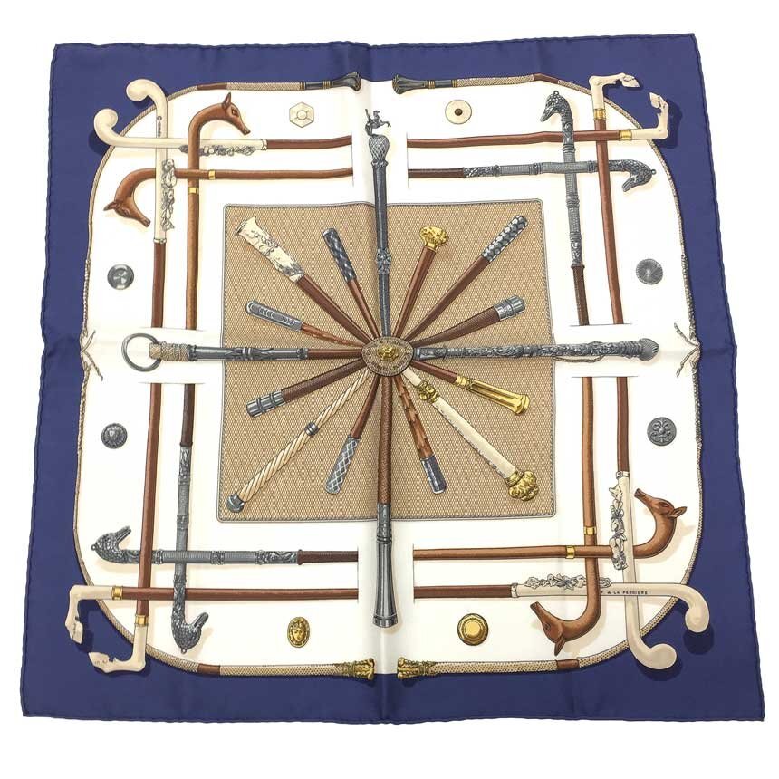 > 全国送料無料 HERMES エルメス スカーフ カレ45 CANNES&POMMEAUX ステッキ 杖 美品 aq10677