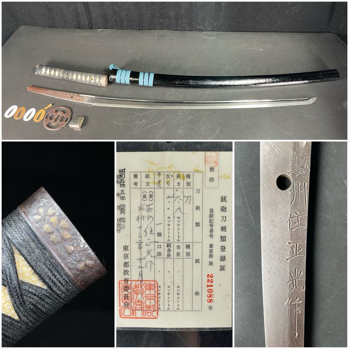 > ◇雅◇ 時代 刀 銘 芸州住正光作 昭和十三年十二月 刀長66.9cm 鮫革 刀剣武具骨董 刀装具 波紋 鎧 甲冑 拵 脇差 短刀 /25.10.KT [B112] OPX