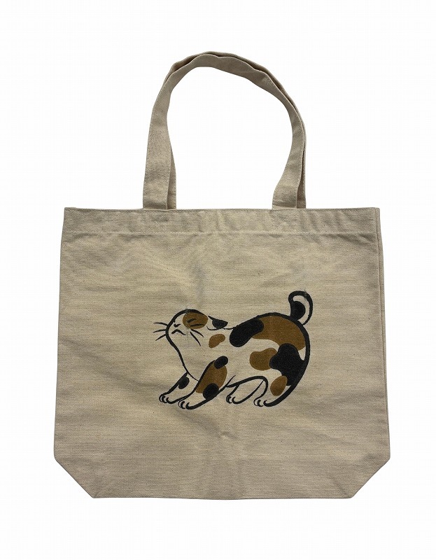 - [江戸てん]訳あり A4サイズ 帆布トートバッグ ヘヴィーキャンバス 内ポケット付き 猫 ナチュラル