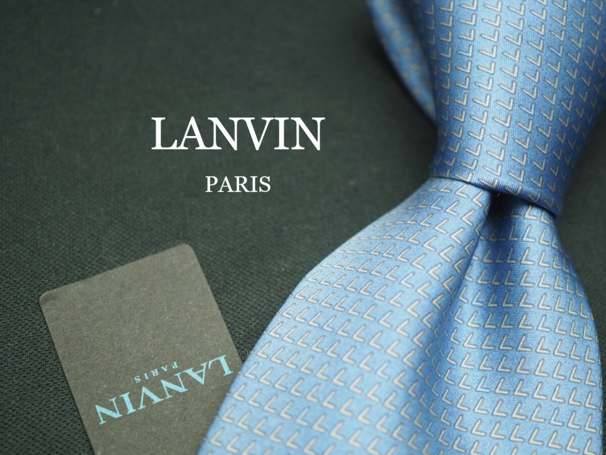 - 訳あり未使用品【LANVIN ランバン】 G1066 水色系 SILK ブランド ネクタイ 古着 良品 転売 仕入